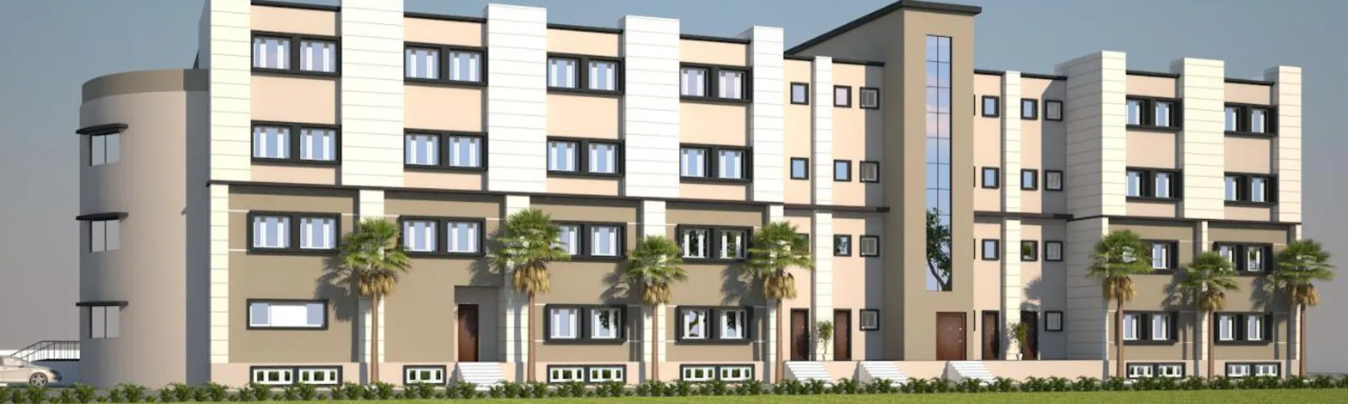 The campus features extensive green lawns and dedicated sports areas, offering students ample space for outdoor activities and physical fitness.
